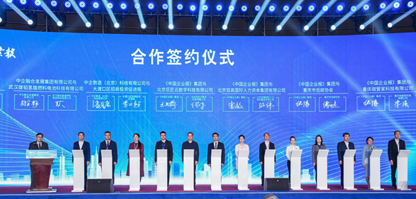 會議還舉行了集中簽約儀式。《中國企業(yè)報》集團(tuán)與航天科工海鷹集團(tuán)有限公司、北京巨匠云數(shù)字科技有限公司、北京雙高國際人力資本集團(tuán)有限公司、重慶市低碳協(xié)會、重慶碳管家科技有限公司,中企融合發(fā)展集團(tuán)有限公司、武漢雄韜氫雄燃料電池科技有限公司,中企數(shù)造(北京)科技有限公司與大渡口區(qū)政府分別舉行了合作簽約儀式。下一步,《中國企業(yè)報》集團(tuán)將與簽約各方進(jìn)行深入長期的合作,為促進(jìn)產(chǎn)業(yè)升級發(fā)展和政企互動合作夯基礎(chǔ),建平臺,增動力。