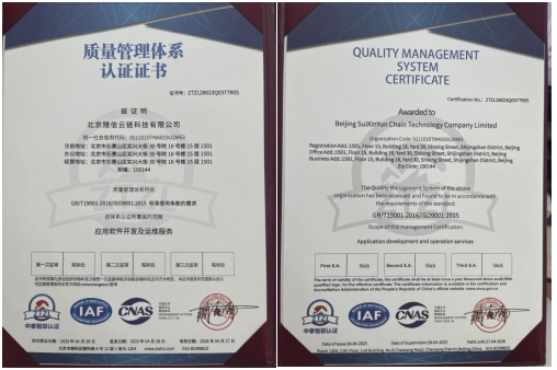 近日,經(jīng)專業(yè)認(rèn)證機(jī)構(gòu)中泰智聯(lián)(北京)認(rèn)證中心有限公司一系列嚴(yán)格的審查考核,北京隨信云鏈科技有限公司 ( 下稱:隨信云鏈 ) 憑借 優(yōu)秀的質(zhì)量管理體系在應(yīng)用軟件開(kāi)發(fā)及運(yùn)維服務(wù)領(lǐng)域,成功獲得ISO9001: ?2015國(guó)際質(zhì)量管理體系認(rèn)證。