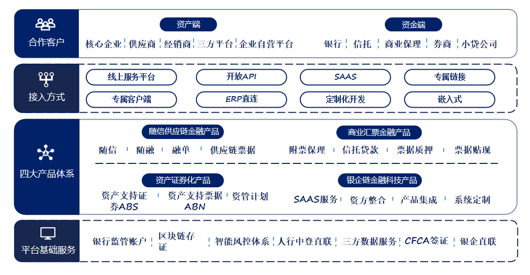基于深度洞察,隨信云鏈從2018年開(kāi)始正式拓展供應(yīng)鏈金融業(yè)務(wù),在結(jié)行科技集團(tuán)金融科技、自有資金和鏈接資源的加持下,運(yùn)用區(qū)塊鏈、大數(shù)據(jù)、云計(jì)算、人工智能等金融科技力量構(gòu)建產(chǎn)業(yè)金融生態(tài)、創(chuàng)新商務(wù)合作模式、建立支付級(jí)智能風(fēng)控體系、提供全生命周期管家式服務(wù), 持續(xù)突破發(fā)展瓶頸,打通產(chǎn)業(yè)鏈信用壁壘,實(shí)現(xiàn)核心企業(yè)商業(yè)信用賦能。