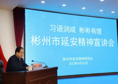 “習(xí)語潤咸,彬彬有理”彬州市延安精神宣講會按照省、市延安精神研究會的總體部署和彬州市委、市政府的要求,進(jìn)機(jī)關(guān)、進(jìn)企業(yè)、進(jìn)學(xué)校、進(jìn)農(nóng)村、進(jìn)社區(qū)、進(jìn)網(wǎng)站開展活動。2023年4月26日,會長魏全群同志帶領(lǐng)彬州市延安精神研究會理事成員赴文家坡煤礦進(jìn)行延安精神宣講報告會。宣講報告會在文家坡煤礦綜合樓三樓會議室舉辦,由工信局副局長齊靜同志主持,魏全群會長主講。宣講內(nèi)容以延安精神的基本內(nèi)容、形成歷史、傳承的意義分為三部分來一一講述。