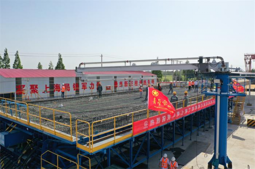 4月30日上午,由中鐵上海工程局承建的巢馬城際鐵路5標馬鞍山制梁場首孔箱梁順利完成澆筑,標志著該梁場正式進入試生產(chǎn)階段,為巢馬城際鐵路如期實現(xiàn)通車目標打下了堅實基礎。