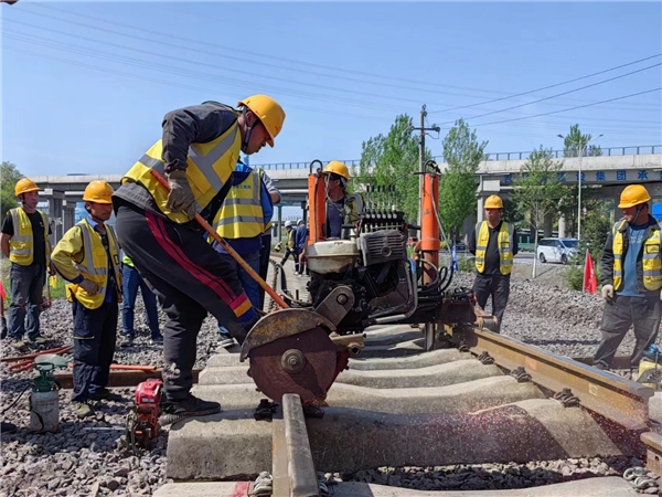 上午8時許,隨著駐站聯(lián)絡(luò)員精準(zhǔn)的天窗施工報點(diǎn)后,上、下行線共200余名作業(yè)人員迅速上道,開始鋸軌、清除既有線枕木頭及枕木盒道碴、整平既有道床、撥移既有線路與預(yù)鋪線路連接等工作,并在線路撥移到位后,迅速進(jìn)行鋼軌焊接、上碴整道、大機(jī)搗固、精調(diào)等作業(yè)。隨后,工務(wù)檢查軌道靜態(tài)幾何尺寸,并進(jìn)行電氣信號聯(lián)鎖試驗,于中午12:30分左右完成施工,恢復(fù)線路。為確保營業(yè)線施工安全質(zhì)量進(jìn)度全面受控,項目部超前謀劃,統(tǒng)籌組織,突出關(guān)鍵環(huán)節(jié)和重點(diǎn)工序,從資源配置、方案優(yōu)化、安全質(zhì)量等方面入手,明確責(zé)任分工,優(yōu)化組織設(shè)計,動態(tài)跟蹤調(diào)整,并嚴(yán)格按照鐵路部門有關(guān)文件要求設(shè)置封鎖及慢行防護(hù),最終圓滿完成了撥接施工任務(wù)。