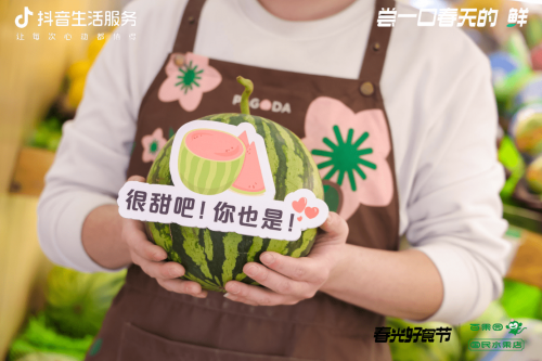 在春日鳳梨營銷旺季,百果園在上海推出了10家「春光好食節(jié)」嘗一口春天主題門店,配合抖音上新團品鳳梨,線下打造10家快閃店讓用戶進店隨處可見的水果文案與心理雞湯集合制作手舉牌,用吃水果的方式表達自己,吃的不僅僅是水果,也是一種生活態(tài)度。線下主題門店推出春季踏青限定打卡物料,線下設置抖音一店一碼物料鋪設引導ugc打卡,還有戴著可愛水果頭套的店員為用戶推薦春日好果。讓用戶行走在春日街頭,走進百果園仿佛走進春天的水果世界。