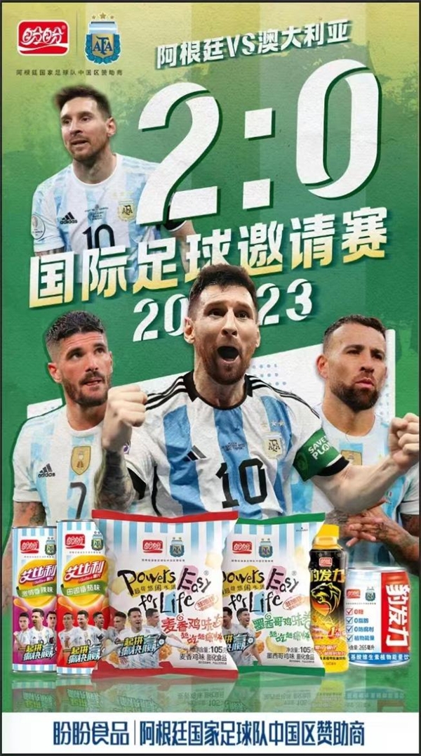 6月15日,萬眾矚目的2023北京阿根廷vs澳大利亞國際足球邀請賽在北京工人體育場正式開打。梅西開場僅81秒率先進(jìn)球,帶領(lǐng)阿根廷隊最終以2比0戰(zhàn)勝澳大利亞隊,阿根廷隊以他們頂級的技術(shù)水平和默契的團隊合作,折服了現(xiàn)場數(shù)萬觀眾。盼盼食品作為阿根廷隊的官方贊助商,熱烈祝賀阿根廷隊在亞洲巡回賽首戰(zhàn)告捷!