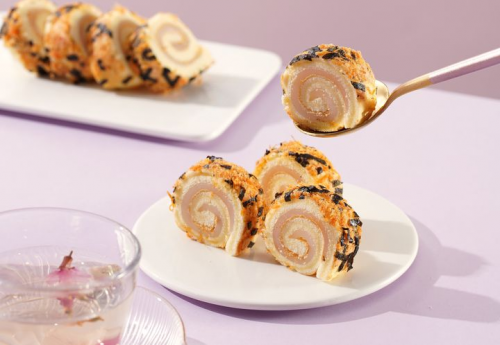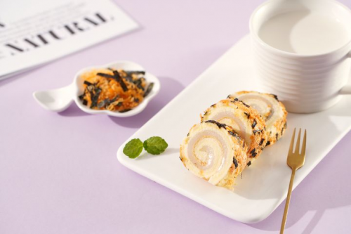 盼盼肉松海苔戚風(fēng)卷,不愧是盼盼食品深耕烘焙產(chǎn)品的又一力作!外面滿(mǎn)滿(mǎn)的一層肉松與海苔,這絕妙搭配,讓整塊蛋糕卷的風(fēng)味更上一個(gè)臺(tái)階!恰到好處的咸香口味,中和了甜點(diǎn)本會(huì)有的甜膩。第一眼看到松軟又帶有淡淡油潤(rùn)的肉松上鋪著微脆的小片海苔,松軟鮮香,好吃又不膩,讓人忍不住深入挖掘,一探究竟!