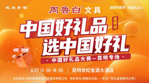2023年6月27日,由杭州筆海弄潮廣告展覽有限公司主辦,專注禮品筆制作25年的周魯白文具冠名的“中國好禮品大賽”貴陽專場在貴陽世紀金源大酒店成功舉辦。比賽全程通過視頻號“杭州禮品展”同步直播。