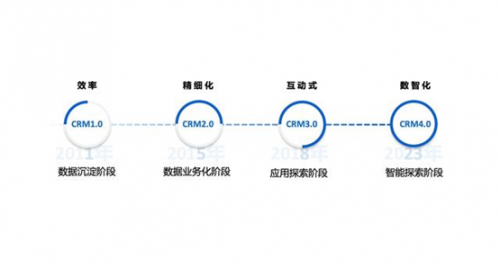 南訊向36氪展示了產(chǎn)品和服務(wù)的迭代升級(jí),作為助力品牌連接用戶(hù)的紐帶,在不斷進(jìn)化的十三年時(shí)間里,南訊圍繞ToC領(lǐng)域CRM的進(jìn)化過(guò)程,將CRM從1.0到4.0總結(jié)為:數(shù)據(jù)沉淀階段、數(shù)據(jù)業(yè)務(wù)化階段、應(yīng)用探索階段、智能探索階段,并且提煉出了4個(gè)發(fā)展階段的核心要點(diǎn):效率、精細(xì)化、互動(dòng)式、數(shù)智化。