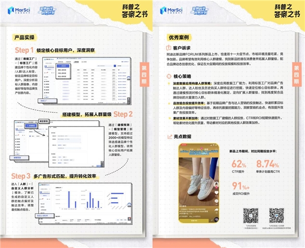 本期的「科普之答案之書」正是以服飾行業(yè)的新品上市營銷節(jié)點為例,品牌結(jié)合“數(shù)據(jù)工廠”中的“標(biāo)簽工廠”“建模預(yù)測”等能力,通過“一鎖定、二擴展、三提效”的經(jīng)營策略,在雙十一大促節(jié)點準(zhǔn)確找到了新品核心用戶和潛在消費者,同時配合品牌動態(tài)創(chuàng)意優(yōu)化,保證在大促期間的投放規(guī)模和投放效率,最終實現(xiàn)了CTR與ROI的大幅度提升。