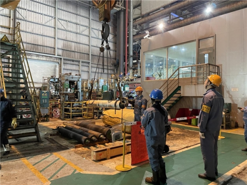 專、研在這里,抓住重點(diǎn)迎難而上,這次定修中有好多項(xiàng)目首次碰到,對(duì)這些史無(wú)前例的吊運(yùn)作業(yè),精心組織、周密部署、根據(jù)各機(jī)組的空間結(jié)構(gòu)制定的吊運(yùn)方案,尤其是3#CGL熱鍍鋅C808機(jī)組鋅鍋技改項(xiàng)目增加鋅鍋感應(yīng)加熱器線圈套裝任務(wù),中冶寶鋼基層單位認(rèn)真梳理吊裝成功的經(jīng)驗(yàn),大膽創(chuàng)新,建議施工方采用三級(jí)指揮方式進(jìn)行指揮吊裝作業(yè),并使用專業(yè)工具橋架直接吊運(yùn),兩端使用麻繩做牽引固定,從C808機(jī)組9層平臺(tái)至上而下,省略了諸多中間環(huán)節(jié),打破崗位壁壘的束縛,僅僅只用了一個(gè)晝夜的時(shí)間,鋅鍋感應(yīng)加熱器線圈順利吊裝就位。比原定計(jì)劃提前了一天時(shí)間。