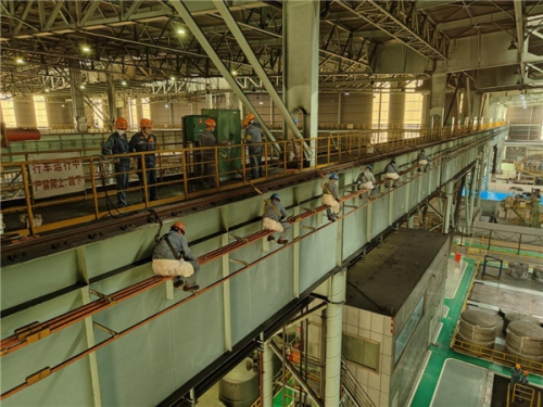 截止18點00分,隨著硅鋼事業(yè)部第二智慧工廠6-2行車滑線檢修項目一次性試車成功,標(biāo)志著第二智慧行車滑線檢修項目施工任務(wù)圓滿結(jié)束,刷新了滑線檢修項目施工最短用時的新紀(jì)錄。中冶寶鋼基層單位高度重視,開工前專業(yè)點檢人員積極與硅鋼事業(yè)部溝通協(xié)調(diào)停機時間,同時從班組抽調(diào)出10余名精兵強將參與到此次劃線檢修的施工中。施工前現(xiàn)場進(jìn)行列隊安全交底,辦理相關(guān)手續(xù),落實各項安全措施,嚴(yán)格執(zhí)行“三方掛牌”制度。在檢修過程中,公司結(jié)合自身特點和實際情況,認(rèn)真落實二級高危安全要求,作業(yè)人員佩戴和正確使用合格的“四合一”檢測儀。從安全交底的落實到安全帶的規(guī)范佩戴,從安全繩的安裝到現(xiàn)場安全的監(jiān)護,對每一個環(huán)節(jié)都絲毫不敢懈怠。在克服高空作業(yè)、戰(zhàn)線長、工期緊等施工難度的同時,對施工質(zhì)量也高標(biāo)準(zhǔn)嚴(yán)要求,滑線吊掛夾更換按照維修作業(yè)標(biāo)準(zhǔn),做好每一道工序每一個步驟,嚴(yán)把質(zhì)量關(guān),為檢修用時提供了有力保證,