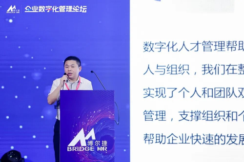 侯博士以2019年與中歐國際工商學(xué)院的忻榕教授、阿里巴巴產(chǎn)業(yè)互聯(lián)網(wǎng)中心主任陳威如教授歷經(jīng)兩年共同創(chuàng)作的《平臺(tái)化管理》一書作為理論指導(dǎo),以及多年人力資源行業(yè)經(jīng)驗(yàn)的沉淀和敏銳的市場洞察,總結(jié)構(gòu)建平臺(tái)化企業(yè)的重要性,包括小前端、強(qiáng)中臺(tái)和穩(wěn)后臺(tái)的建設(shè)。侯博士介紹了平臺(tái)化管理的五化模型:能力數(shù)字化、關(guān)系數(shù)字化、績效顆?;?、結(jié)構(gòu)柔性化、以及文化利他化。侯博士分享了博爾捷集團(tuán)的成功經(jīng)驗(yàn),鼓勵(lì)其他企業(yè)在探索和實(shí)踐中進(jìn)行數(shù)字化轉(zhuǎn)型和組織變革,以實(shí)現(xiàn)平臺(tái)化管理。