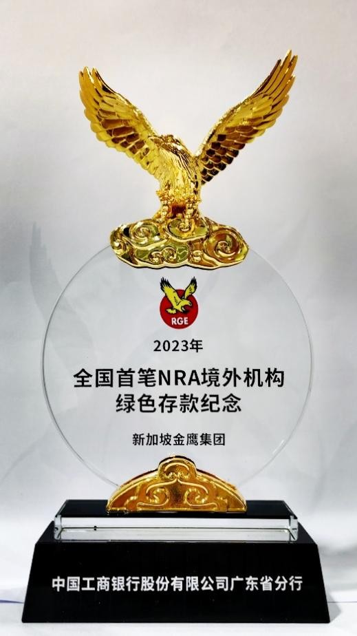 全國(guó)首筆NRA境外機(jī)構(gòu)綠色存款紀(jì)念獎(jiǎng)杯