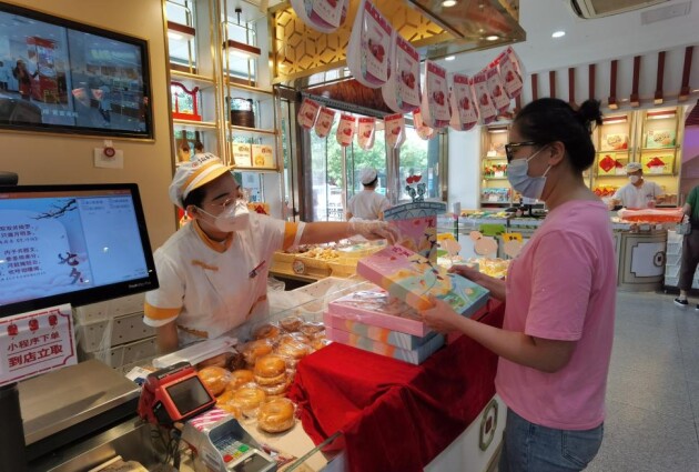 “去年這個巧果禮盒就特別火,差點(diǎn)兒沒搶到,這不是又快到七夕節(jié)了嘛,所以今天門店還沒開門我就過來了,就是奔著這個禮盒來的?!痹诒本┑鞠愦逦挥跂|直門的“東城食尚店”里,一位女孩正在挑選著“巧果”糕點(diǎn)禮盒。據(jù)工作人員介紹,今年為了方便顧客選購,北京稻香村還上線了微信小程序,顧客可以通過線上下單巧果禮盒等產(chǎn)品,到店取貨,節(jié)約購買時間。