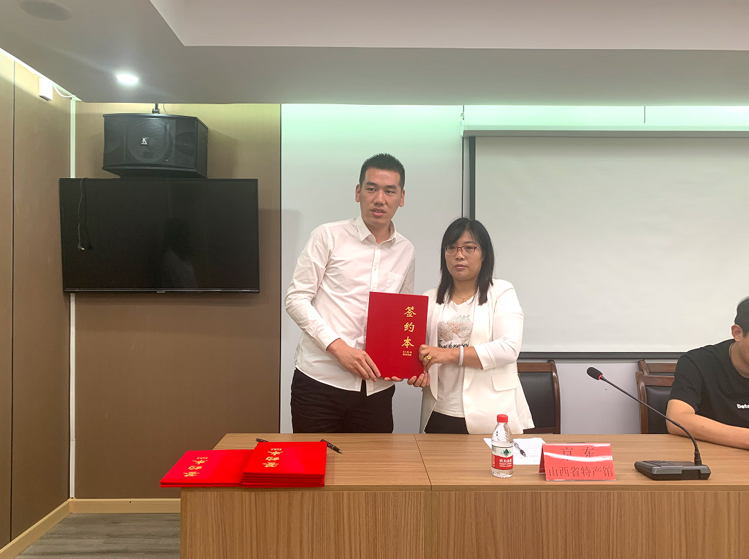 此次產(chǎn)銷對接會上,浮山縣康杰副食品有限公司郭杰、山西堯田農(nóng)業(yè)科技股份有限公司張振東以及浮山縣神山土特產(chǎn)品加工有限公司李準(zhǔn)作為農(nóng)產(chǎn)品企業(yè)代表上臺做重點(diǎn)推介。對接會現(xiàn)場專門設(shè)置了浮山農(nóng)產(chǎn)品展示區(qū),便于能近距離感受和體驗(yàn)浮山的特色農(nóng)產(chǎn)品,現(xiàn)場洽談對接氛圍熱烈,隨后京東特產(chǎn)館負(fù)責(zé)人代表京東平臺與到場的13家企業(yè)簽訂產(chǎn)銷合同,達(dá)成戰(zhàn)略合作協(xié)議。
