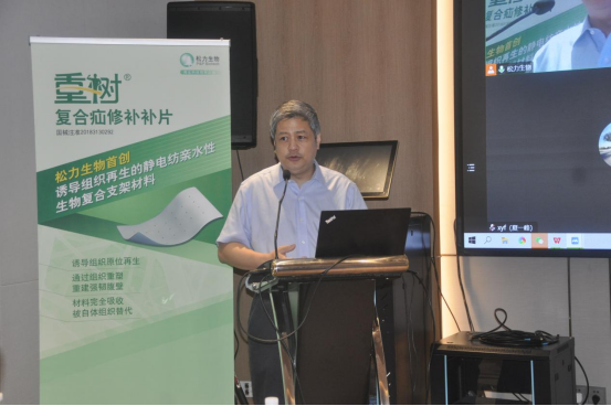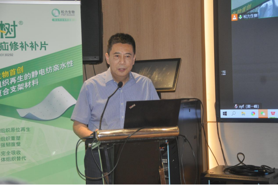 松力生物聯(lián)合創(chuàng)始人、副總經(jīng)理?xiàng)罾蚍窒砹怂闪ι锏能浗M織誘導(dǎo)性生物材料的研究進(jìn)展,她介紹稱,松力生物可再生復(fù)合疝修補(bǔ)補(bǔ)片由松力生物自主研發(fā)的靜電紡親水性軟組織誘導(dǎo)性生物材料制成,此外,分享了這種新型復(fù)合生物材料在動(dòng)物實(shí)驗(yàn)中成功誘導(dǎo)骨骼肌、韌帶、肩袖、子宮壁、腸壁組織再生的研究成果。