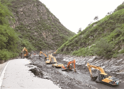 8月5日16時,隨著北京建工機施集團副總經(jīng)理劉海龍趕到史家營鄉(xiāng)政府向鄉(xiāng)長匯報搶險結(jié)果,標志著經(jīng)過30小時鏖戰(zhàn),北京建工機施集團全面打通了賈金路賈峪口至史家營鄉(xiāng)18公里交通生命線。