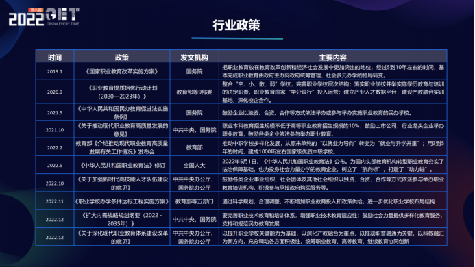 二十大報告里面對教育領域的發(fā)展也提出了明確的目標,就是要建成教育強國、科技強國、人才強國、文化強國等,尤其在教育、科技、人才方面,這都是跟我們行業(yè)息息相關的,也是我們行業(yè)機構在業(yè)務布局和企業(yè)經(jīng)營方面需要重點關注的方向。
