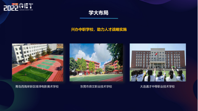 另外,學大教育在布局中等職業(yè)學校方面,陸續(xù)完成了對東莞市鼎文職業(yè)技術學校、大連通才中等職業(yè)技術學校的投資并購。完成了青島西海岸新區(qū)綠澤電影美術學校的托管運營。還通過聯(lián)合辦學、輸出師資的方式與國內(nèi)20多所中職學校達成了合作。
