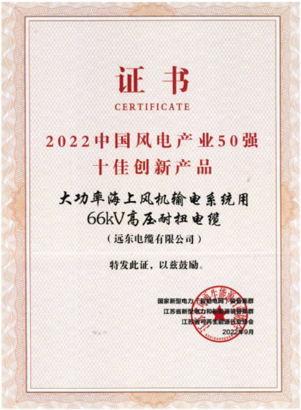 該系列產(chǎn)品主要應(yīng)用于海上大功率風(fēng)電機(jī)組電力傳輸,不僅可以有效地提升傳輸容量和效率,降低系統(tǒng)損耗,還可以實(shí)現(xiàn)全壽命周期內(nèi)安全可靠運(yùn)行,是大功率海上風(fēng)電機(jī)組亟需的核心部件,也是未來海上大功率風(fēng)力發(fā)電技術(shù)發(fā)展趨勢。并成功應(yīng)用于華電臺州玉環(huán)、福清興化灣等多個海上風(fēng)電場等項(xiàng)目,還被授予了國家工信部頒發(fā)的“制造業(yè)單項(xiàng)冠軍”、2022中國風(fēng)電產(chǎn)業(yè)50強(qiáng)“十佳創(chuàng)新產(chǎn)品”等多項(xiàng)榮譽(yù),獲得了從國家到行業(yè)的高度認(rèn)可,夯實(shí)了公司在風(fēng)電電纜行業(yè)的領(lǐng)軍地位。