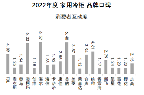 消費者互動度方面,海爾、美的、澳柯瑪位居前三。海爾、美的、澳柯瑪、統(tǒng)帥、容聲、美菱、新飛、康佳在近兩期中均位居前十。TCL、志高在本期晉升至前十,卡薩帝、奧馬則掉出前十。
