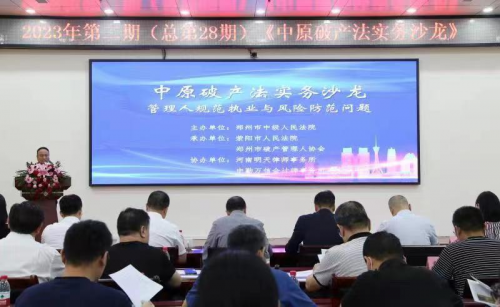 為進(jìn)一步提高破產(chǎn)審判專業(yè)化水平,優(yōu)化法治化營商環(huán)境,以破產(chǎn)審判服務(wù)保障經(jīng)濟(jì)高質(zhì)量發(fā)展。6月3日下午,由鄭州市中級人民法院主辦,滎陽市人民法院、鄭州市破產(chǎn)管理人協(xié)會承辦的2023年度第二期中原破產(chǎn)法實(shí)務(wù)沙龍?jiān)跍铌柺腥嗣穹ㄔ号e辦。來自政府、法院、高校及從事破產(chǎn)實(shí)務(wù)、理論研究的省內(nèi)外專家、法官、管理人代表等110余人現(xiàn)場參加沙龍活動。該期沙龍由鄭州市中級人民法院清算與破產(chǎn)審判庭副庭長陳丕運(yùn)主持。