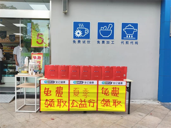 為應(yīng)對高溫天氣,淮安廣濟(jì)醫(yī)藥連鎖10家藥店,設(shè)置了“愛心冰箱”,給戶外勞動(dòng)者提供免費(fèi)飲用水和藿香正氣液等解暑物資。
