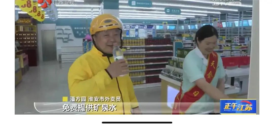 “最近天氣太熱了,廣濟(jì)醫(yī)藥給我們準(zhǔn)備了水跟藿香正氣液,內(nèi)心非常感激。”一位前來領(lǐng)水的外賣員由衷地感謝道。